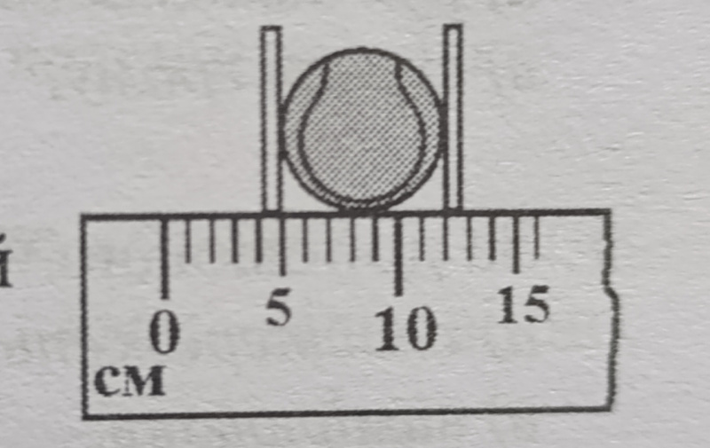 Визначити цілу поділки шкали лінійки і довжину кола, що обмежує м'яч