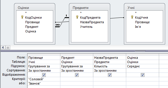 Вибери у списку запит до бази даних «Успішність», що відповідає бланку запиту, наведеному на малюнку.