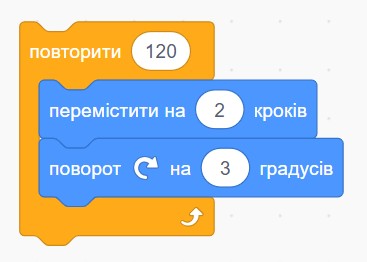 У Scratch є команда «повторити 10», всередині якої стоїть «перемістити на 5 кроків». Яку загальну відстань пройде спрайт?