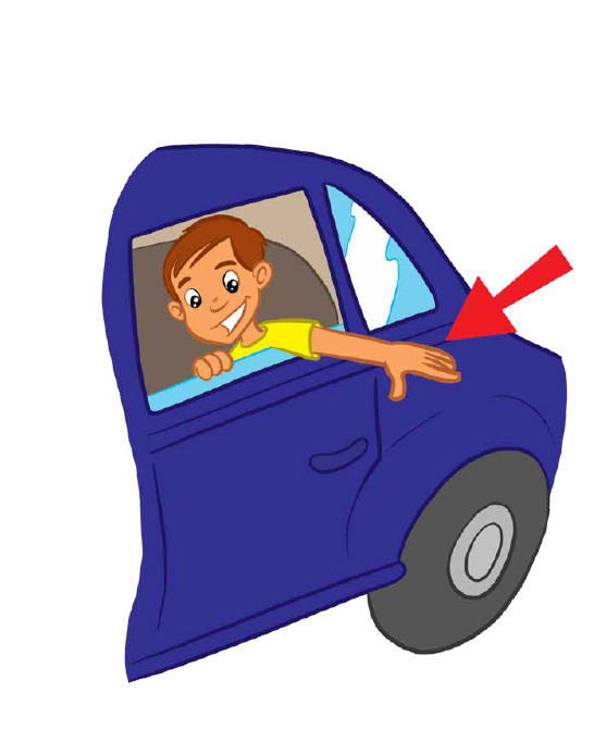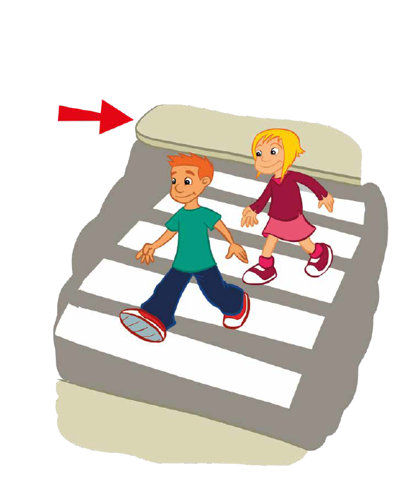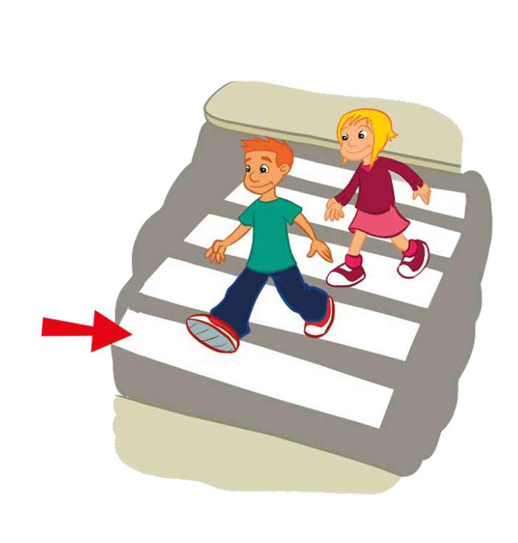 The girl gets there _______ foot.