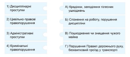 Оберіть усі види існуючих правопорушень.