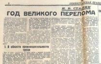 В якому році в газеті "Правда" з'явилася стаття Й. Сталіна "Рік великого перелому"?