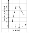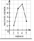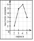 Група учнів із 15 осіб написала контрольну роботу з алгебри. Оцінки, одержані учнями за виконання контрольної роботи, виявилися такими: 4, 2, 4, 4, 5, 3, 3, 4, 5, 3, 5, 3, 4, 4, 3. Укажіть полігон частот, що відповідає цьому ряду даних.