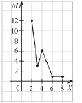 Серед учнів одного класу проведено опитування щодо кількості книг, прочитаних ними під час літніх канікул. Результати цього опитування подано в таблиці (Х - кількість книг, прочитаних учнем за канікули, М - кількість учнів, які прочитали таку кількість книг). На якому з указаних полігонів правильно проілюстровано заданий розподіл частот?