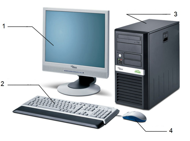 Визначте назви позначених складових комп’ютера (4 відповіді)