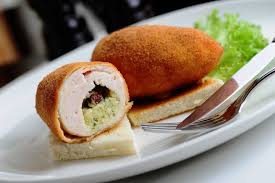 Для приготування якого н/ф натуральну січену масу з свинини порціонують по 2 штуки на порцію. На середину укладають охолоджене вершкове масло. Напівфабрикат панірують в борошні, змочують в лєзоні, панірують в білих мелених сухарях, надаючи овальної форми,використовують для смаження у фритюрі