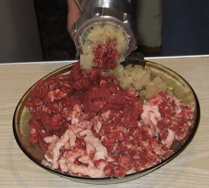 1.М'ясо яловичини 2. М'ясо свинини 3. Сало - шпиг 4. Цибуля ріпчаста