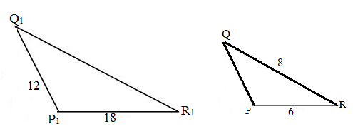 Відомо, що ΔPQR~ ΔP1Q1R1. За даними на малюнку знайдіть сторони PQ і Q1R1.
