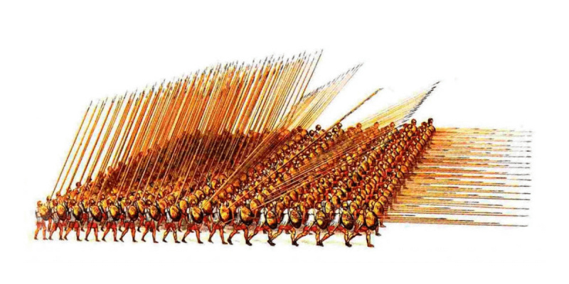 Як називається зображений військовий стрій, який використовували грецькі та македонські воїни?