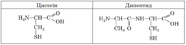 Дипептид складається з фрагментів молекул цистеїну й амінокислоти, формула якої