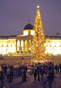 The tree is 20 metres high and 50 to 60 years old! It comes from the forest around Oslo. A lot of people come to sing Christmas carols near the Christmas tree in Trafalgar Square.
