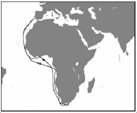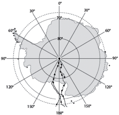 Ha рисунку позначено шлях експедиціії, яку очолював