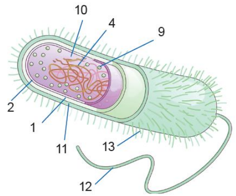 Якими цифрами позначені органели прокаріотичної клітини, яких немає у клітин еукаріотів