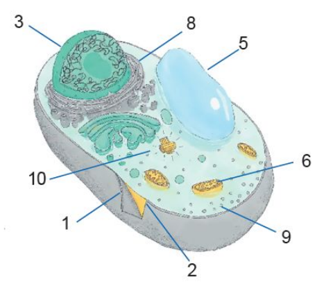 Якою цифрою позначена органела, що відповідає за утворення енергії