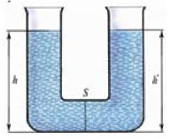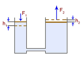 В U – подібній трубці міститься вода. На ліве коліно створили тиск так, що вода у ньому опустилася на 3 см. На скільки піднялась вода в іншому коліні?