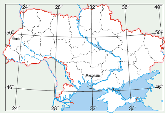 Укажіть протяжність території України із заходу на схід у градусах, якщо відомо, що довготи крайньої західної та східної точок України складають приблизно 22° сх. д. та 40° сх. д. відповідно?
