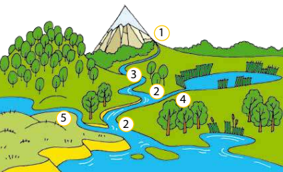 Обери варіант де правильно позначено будову річки, користуючись малюнком.