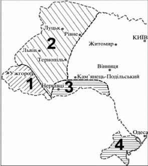 Якою цифрою на карті позначено регіон, що ввійшов до складу Української РСР за договором з Чехословаччиною?
