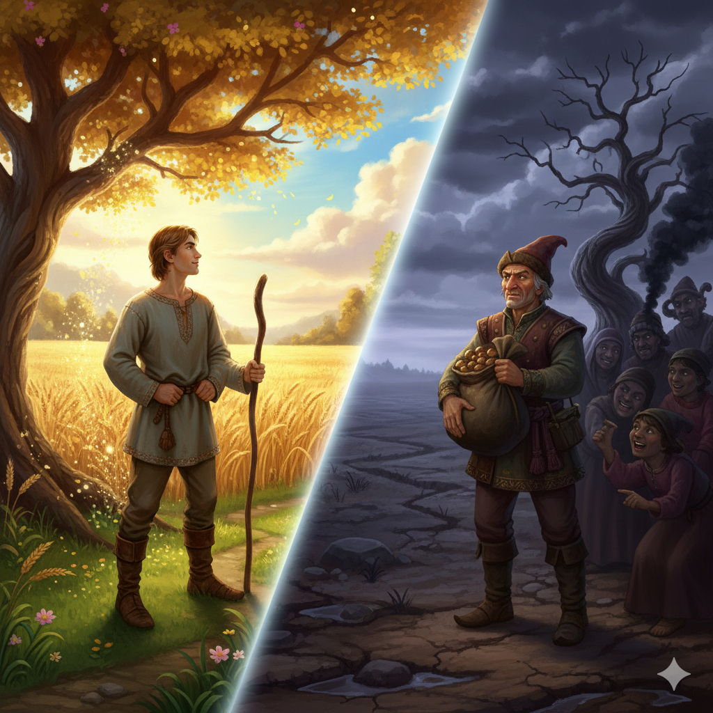 8. Небіж забрав у дядька усю худобу і дядько залишився голий, босий, голодний.
