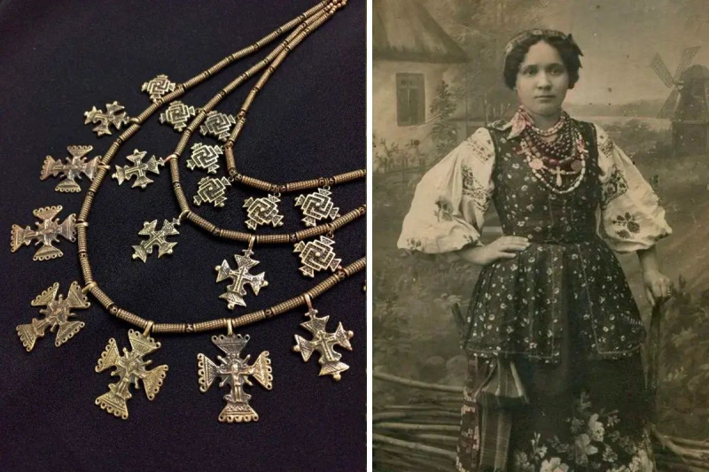 Традиційна гуцульська прикраса-оберіг. Вона мала вигляд нанизаних на ремінець, шнурок чи дротик в один, два чи три ряди мідних литих хрестиків, між якими чіпляли мідні трубочки або спіральки.