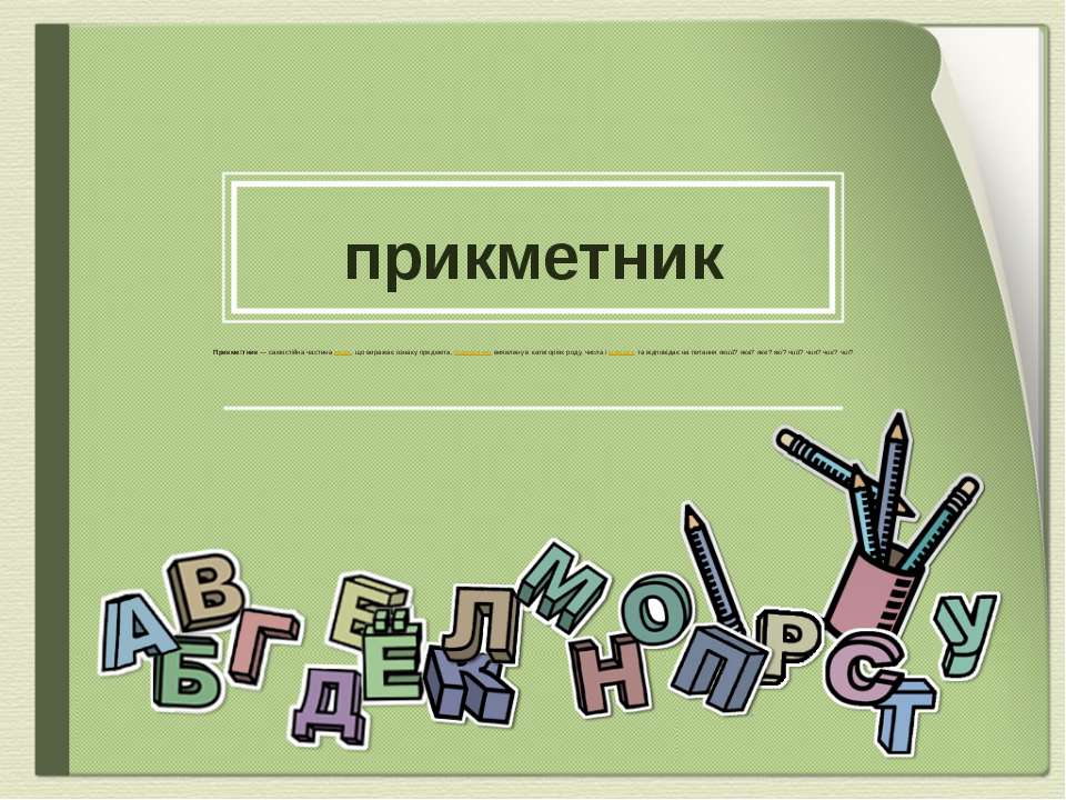 Приклад запитання: Прикметник - це частина мови