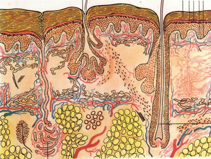 Вказжіть шар шкіри, в якому розташовані потові та сальні залози.