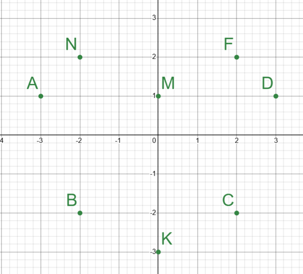 Яка точка на малюнку є симетричною точці В відносно початку координат?