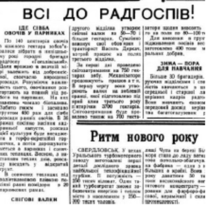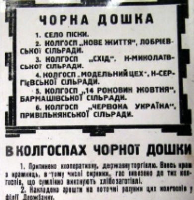 Який з наведених фрагментів газетних шпальт є наочним прикладом застосування репресивного інструмента механізму Голодомору?