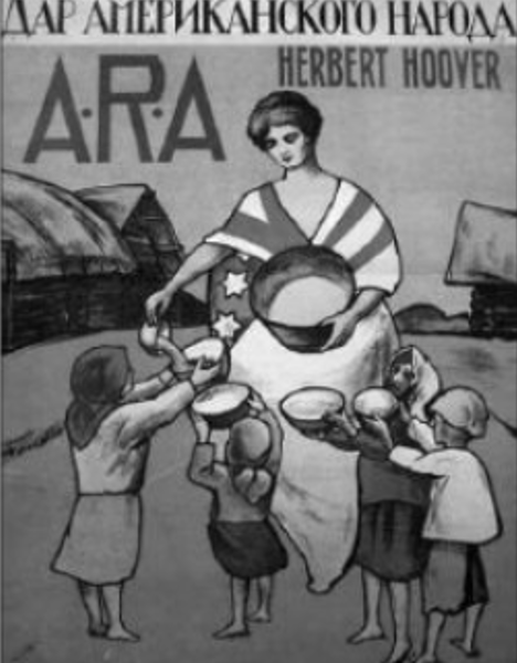 Що зумовило появу даного плакату? Напис на плакаті "Дар американського народу", Herbert Hoover