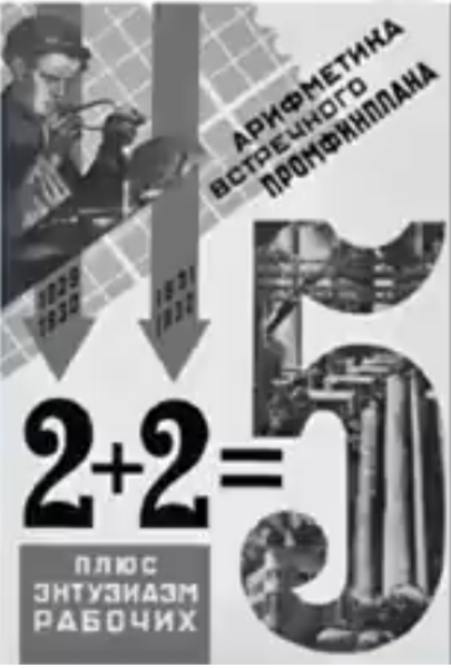 Зображений агітаційний плакат є джерелом для визначення (напис на плакаті "плюс ентузіазм робітників"):