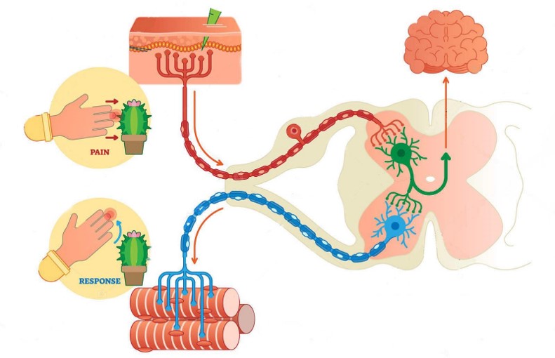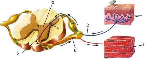Укажіть шлях проходження нервового імпульсу в організмі людини.