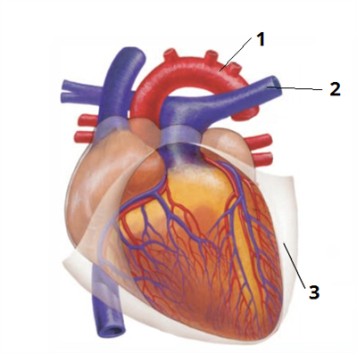 Встанови, під яким номером на зображенні серця представлено аорту: