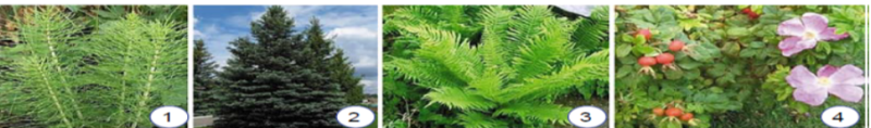 Установіть відповідність між зображенням представника вищих рослин та ознаками групи, до якої він належить.
