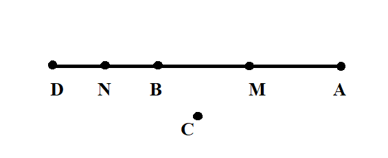 5. Визначте за рисунком, яка з точок A,B,C і D лежить між точками M і N