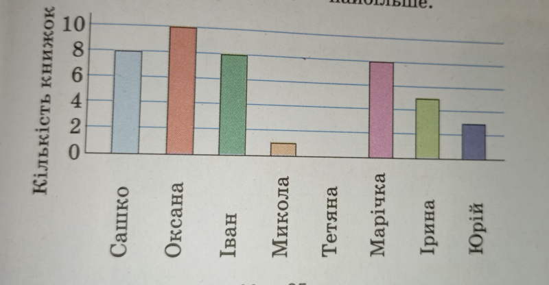 Скільки книжок прочитали Сашко, Іван та Марічка.