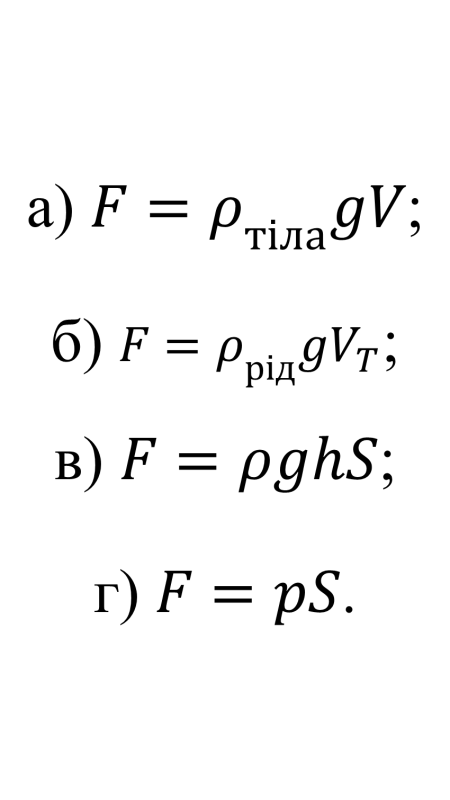 ГР2 Від якої фізичної величини залежить чи тіло буде плавати у воді, чи потоне, чи спливе?