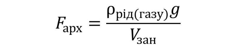 ГР3 На алюмінієвий брусок, повністю занурений у воду, діє сила Архімеда. За якою формулою в цій задачі буде обчислюватися об'єм
