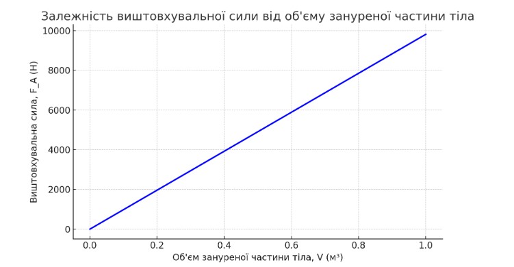 Запитання: Яку інформацію про виштовхувальну силу можна отримати, аналізуючи цей графік?