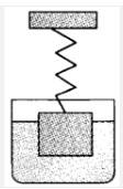 На рисунку показано тіло, яке підвішене до пружини та знаходиться в посудині з рідиною. Якщо тіло вийняти з посудини, то довжина пружини...