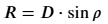 Формула для визначення лінійного радіуса світила (R) через його кутовий радіус (ρ'' у секундах) та відстань до нього (D):
