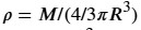 Якщо відомі маса (M) та радіус (R) планети, за якою формулою можна обчислити її середню густину (ρ)?