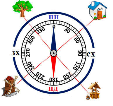 Азимут, за яким треба йти, щоб потрапити до будинку…