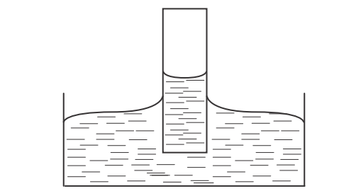 Вода змочує скло, але не змочує цинк. Виберіть рисунок, що відповідає ситуації, коли в цинкову посудину з водою опустили скляну трубку.