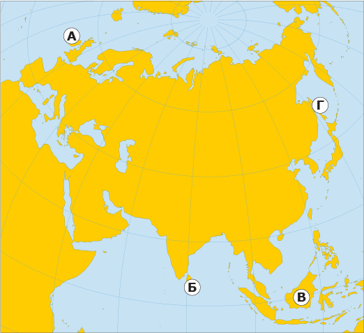 Встановіть відповідність між островом та буквою, якою він позначений на карті.