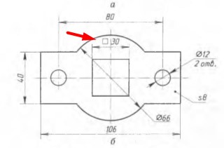 Що означає розмірний знак , нанесений перед числом 30?(вказаний стрілочкою на кресленнику)