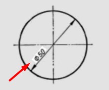 Що означає знак , який на зображенні розміру кола показаний стрілочкою