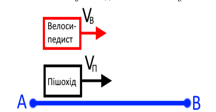 Спершу взнаємо кінцеву швидкість. Оскільки, швидкість велосипедиста є більшою, то від неї будемо віднімати швидкість пішохода.