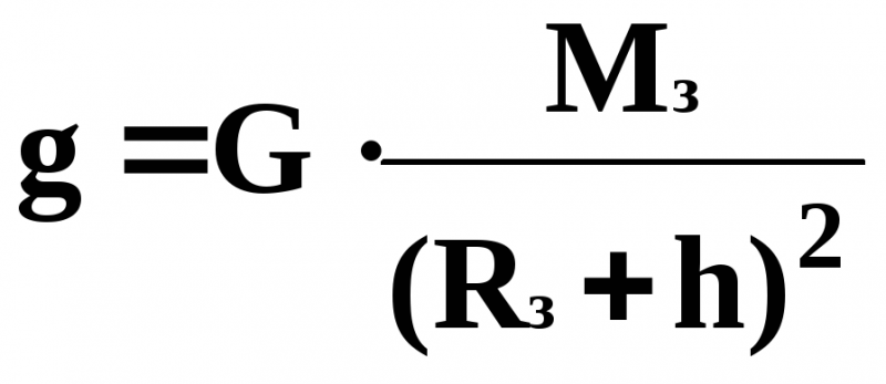 Із закону всесвітнього тяжіння прискорення вільного падіння над поверхнею Землі розраховують за формулою: