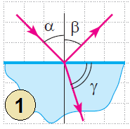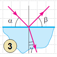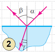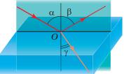 Промінь світла падає з повітря на поверхню скляної пластини. На якому з наведених рисунків правильно зазначено всі три кути: кут падінняα, кут відбивання β і кут заломлення γ ?