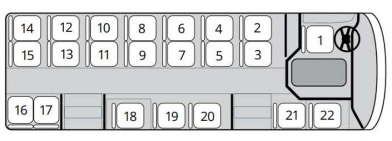 Напишіть номери найменш безпечних місць у маршрутному таксі
